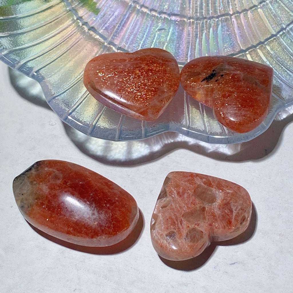 Golden Sunstone hearts are known for promoting emotional healing, joy, and uplifting energy. Their radiant golden-orange hues inspire love and compassion while helping balance the heart chakra, making them wonderful meditation aids or gifts.