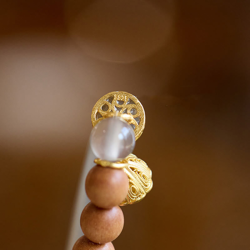 - Materials: Sandalwood, Gray Agate, Chalcedony, 925 Sterling Silver Gold Plated