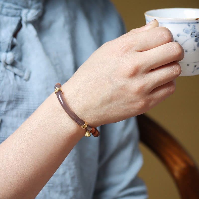 Ja, unser Armband ist handgefertigt aus echtem natürlichem Sandelholz , grauem Achat und Chalcedonsteinen , kombiniert mit vergoldeten Akzenten aus 925er Sterlingsilber für dauerhafte Qualität und spirituellen Nutzen.