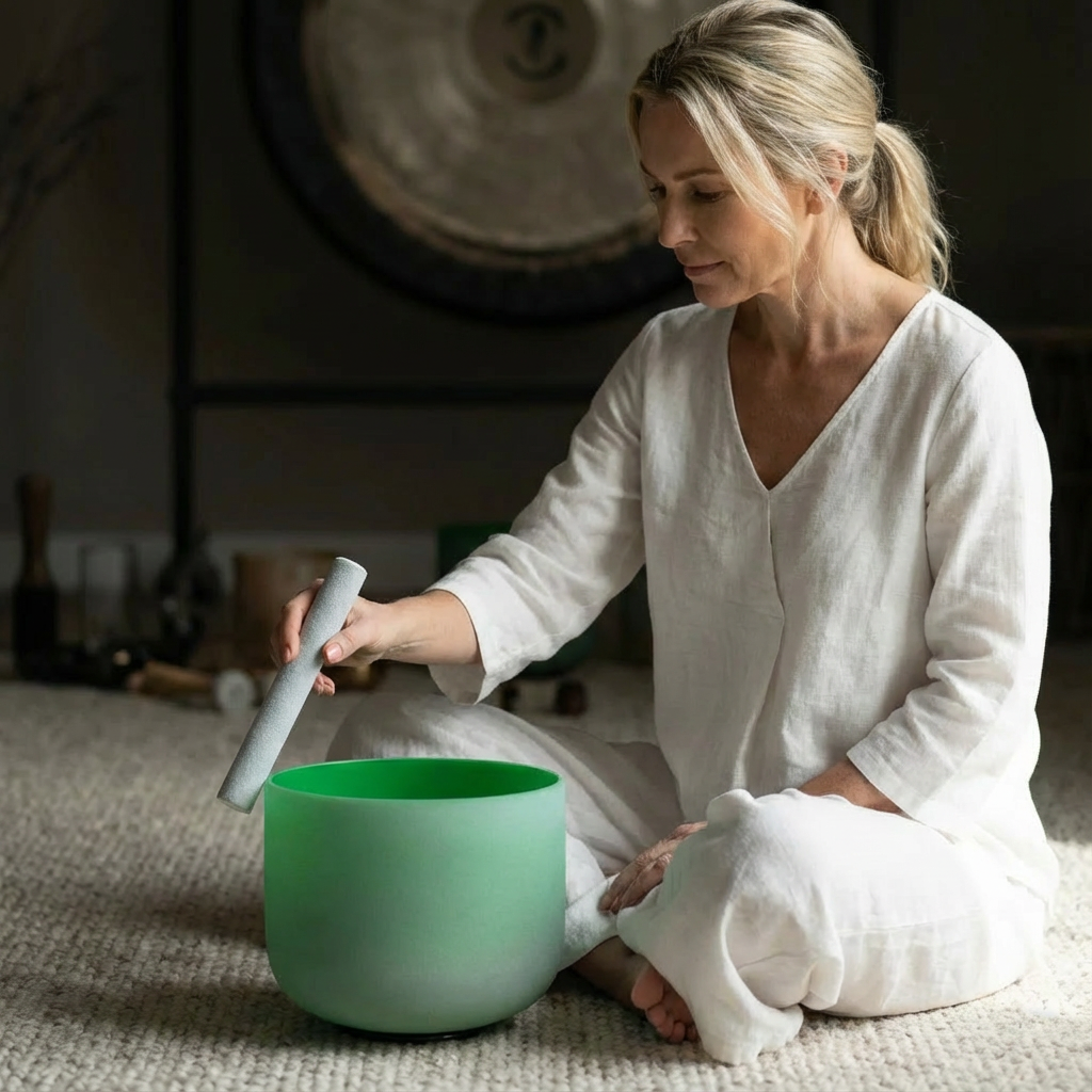 Jede Kristallklangschale wird auf Bestellung handgefertigt , um höchste handwerkliche Qualität und präzise Abstimmung zu gewährleisten. Dieser handwerkliche Prozess garantiert ein Instrument, das den höchsten Standards der Klangheilung entspricht.