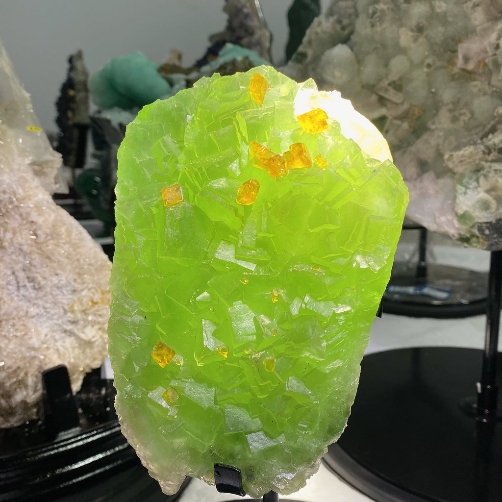 Ja, dieser Kristall ist eine 100 % natürliche Formation mit echtem grünem Fluorit und eingebettetem Baryt . Jedes Exemplar wird sorgfältig ausgewählt, um die Echtheit zu gewährleisten und die einzigartige Mineralmatrix hervorzuheben, die typisch für hochwertige Kristallexemplare ist.