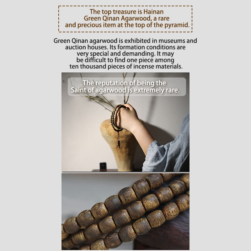 Die Hainan Green Qinan Agarholzperlen werden für ihre Fähigkeit geschätzt, den Geist zu beruhigen, das Bewusstsein während der Meditation auszugleichen und negative Energien abzuwehren. Sie rufen Gefühle von Frieden, Kraft und spiritueller Erdung hervor und machen sie ideal für meditative Praktiken und spirituelle Reisen.