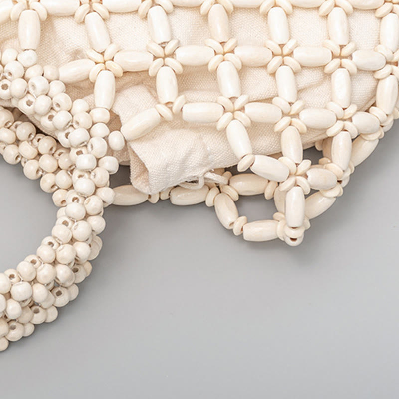 - Materialien: Holzperlen und Polyester-Baumwoll-Mischgewebe