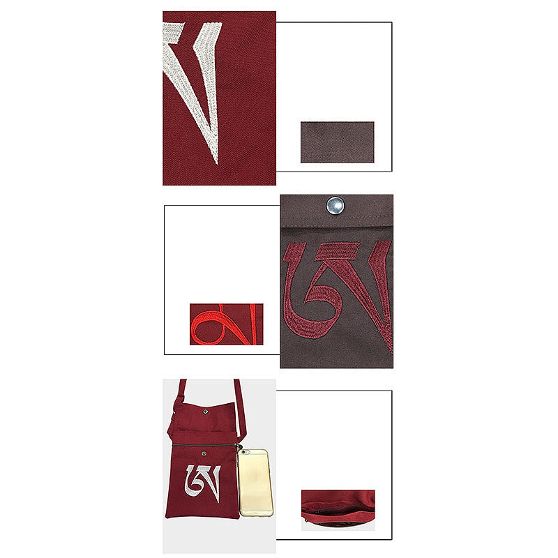 Die symbolische OM-Stickerei dient als ständige Erinnerung an Ihre spirituelle Praxis und verleiht Ihrem Alltagsgepäck ein Element heiliger Absicht. Die kompakte Größe der Tasche verhindert Überpacken und bietet dennoch ausreichend Platz für das Nötigste.