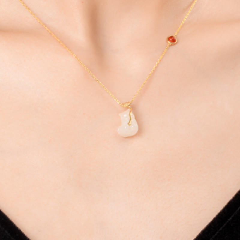Entdecken Sie das exquisite Hetian Jade Ruyi Cat Luck Armband- und Halsketten-Set , ein bezauberndes Jadeschmuck-Ensemble, das antike Symbolik mit eleganter Handwerkskunst verbindet. Dieses harmonische Paar aus Armband und Halskette mit Anhänger besteht aus authentischer Hetian-Jade – seit Jahrhunderten als edelstes Nephrit verehrt – ergänzt durch leuchtende Zinnober-Akzente und detaillierte Ruyi-Katzenmotive, die Wohlstand und Schutz vermitteln.