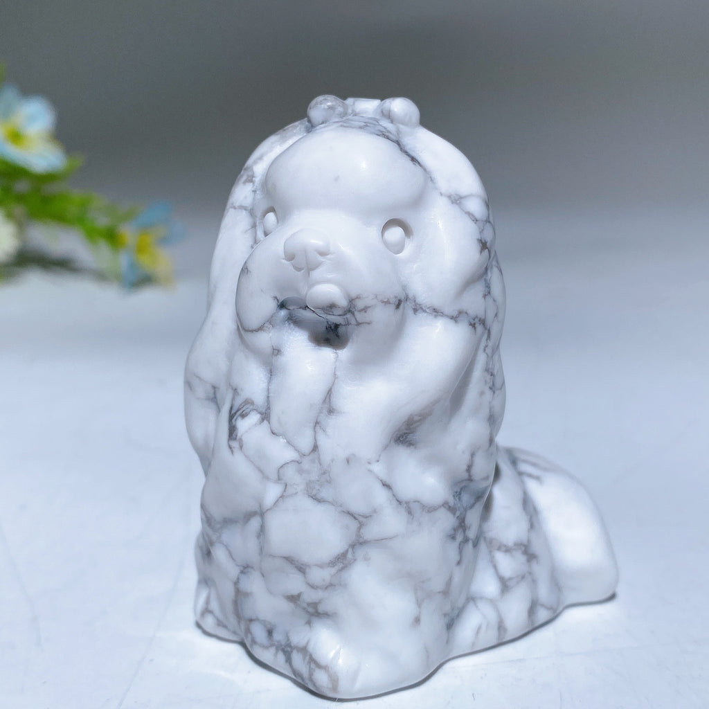 Yes, these dog carvings are hand-carved from genuine natural Howlite and Black Obsidian stones. Their polished surfaces highlight the natural beauty and unique patterns of each crystal, ensuring authentic and high-quality pieces.