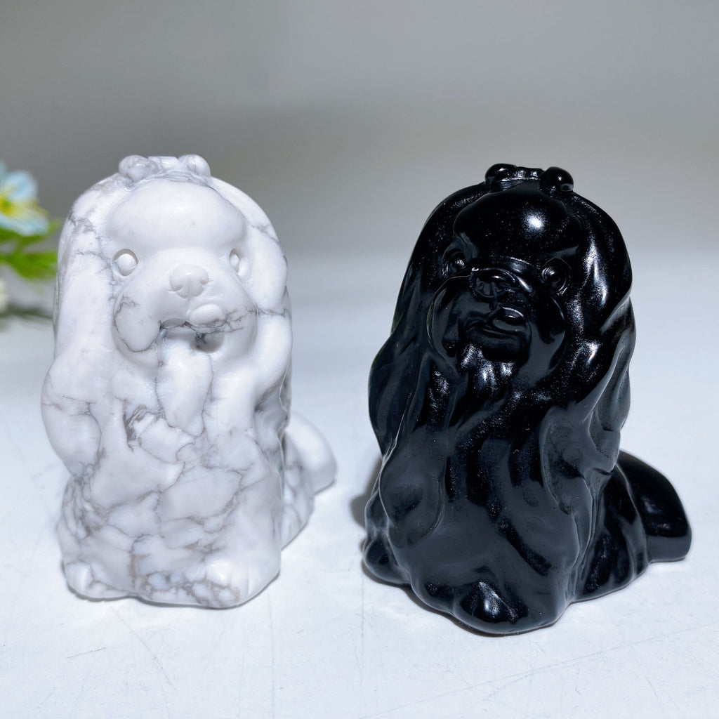 The Howlite and Black Obsidian crystal dog figurines offer unique energetic benefits. Howlite is known for promoting calmness and reducing anxiety, while Black Obsidian provides protection and grounding. Together, they create a harmonious balance ideal for meditation and spiritual healing.