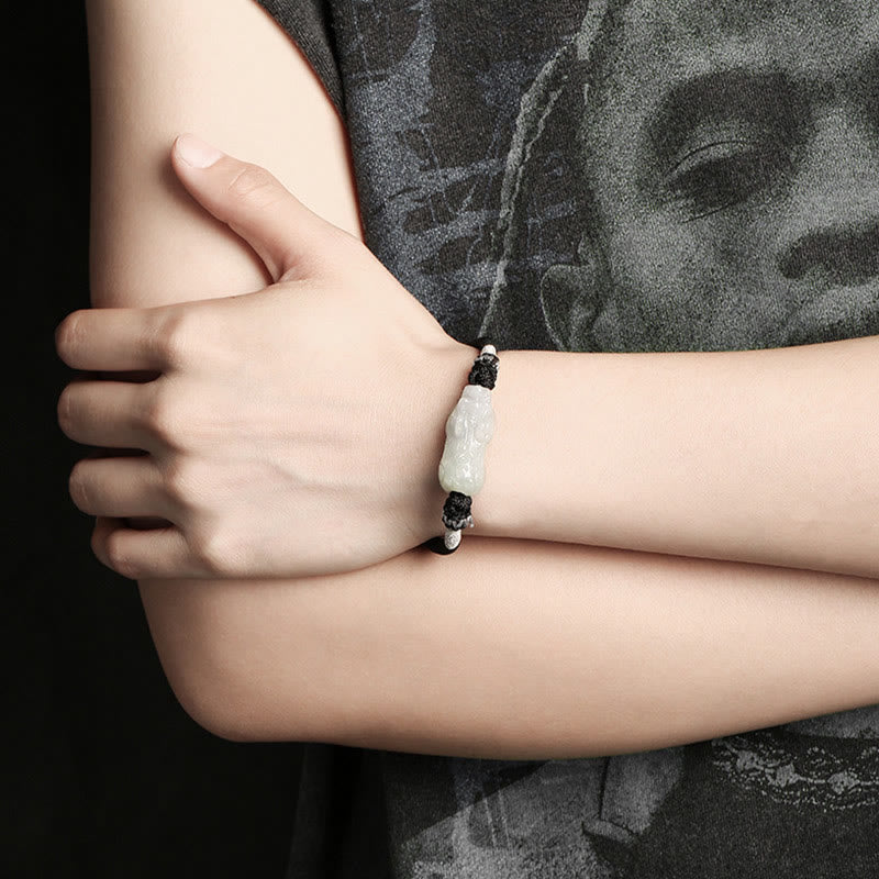 Dieses sorgfältig aus echtem Jadeit gefertigte Armband verkörpert die legendären Eigenschaften des Steins, während der schützende PiXiu-Anhänger sein Reichtumspotenzial verstärkt. Das elegante Flechtdesign sorgt für Tragekomfort im Alltag und bewahrt gleichzeitig seine kraftvolle energetische Präsenz.