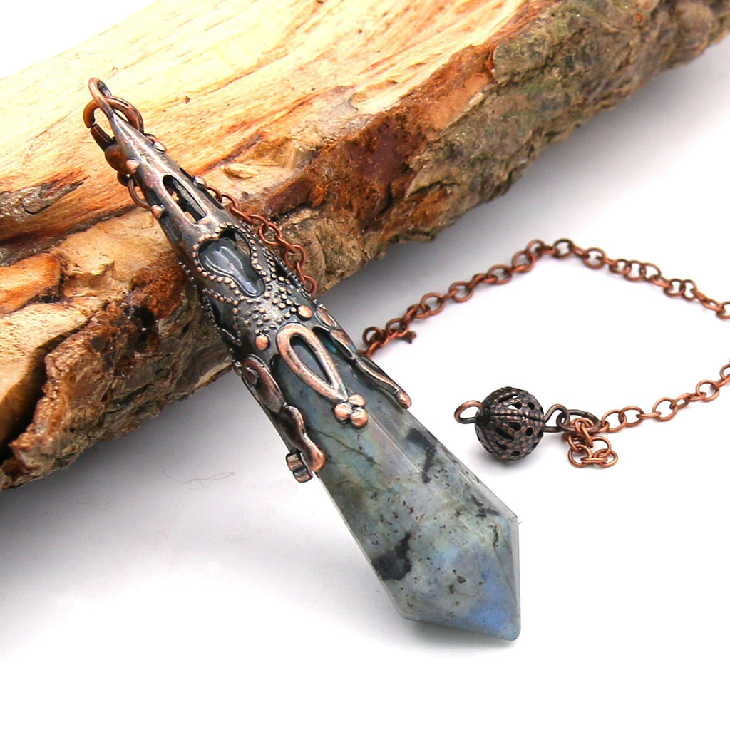 Entdecken Sie das Labradorit-Pendel „Higher Guidance“ , ein leistungsstarkes Werkzeug, das Ihre spirituellen Praktiken verbessern soll. Dieser aus feinstem Labradorit gefertigte Kristall ist für seine Fähigkeit bekannt, das Selbstvertrauen zu stärken und Ängste und Unsicherheiten zu lindern . Er hilft Ihnen, sich mit Ihrem inneren Geist und Ihrer Intuition zu verbinden, und ist daher ein ausgezeichneter Begleiter für alle, die ihre spirituelle Verbindung vertiefen möchten. Die einzigartige Fähigkeit des Labradorits, eine schützende Aura um Sie herum zu schaffen, sorgt dafür, dass Ihre Energie intakt und ungestört bleibt, was ein tieferes spirituelles Erwachen ermöglicht.