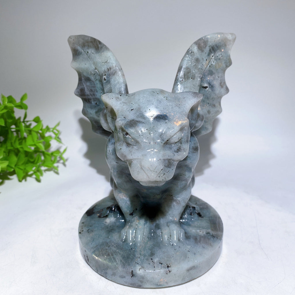 The labradorite gargoyle is believed to enhance spiritual healing by protecting energy fields and promoting balance. Its unique iridescent flashes support meditation and deepen intuition.