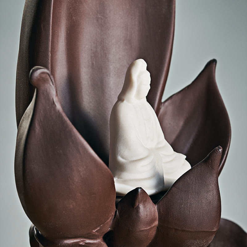 Jeder Brenner zeigt detailreiche Buddha-Figuren auf einem heiligen Lotusthron und ist in drei eindrucksvollen Varianten erhältlich: Lotus Tathagata Buddha, Lotus Avalokitesvara (Buddha des Mitgefühls) und Lotus Ksitigarbha Buddha. Die satten Erdtöne und die exquisite Verarbeitung schaffen einen Blickfang, der auch bei Nichtgebrauch Ruhe ausstrahlt.
