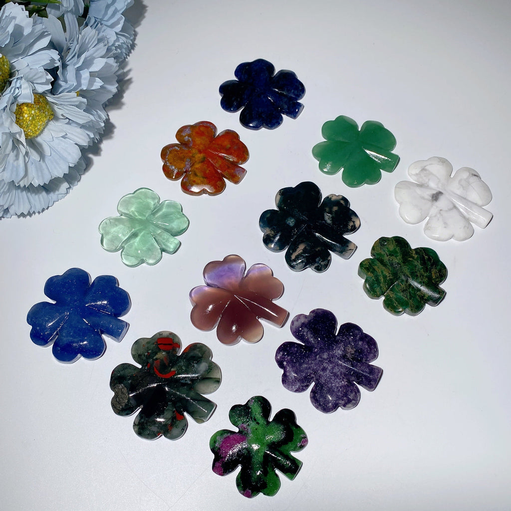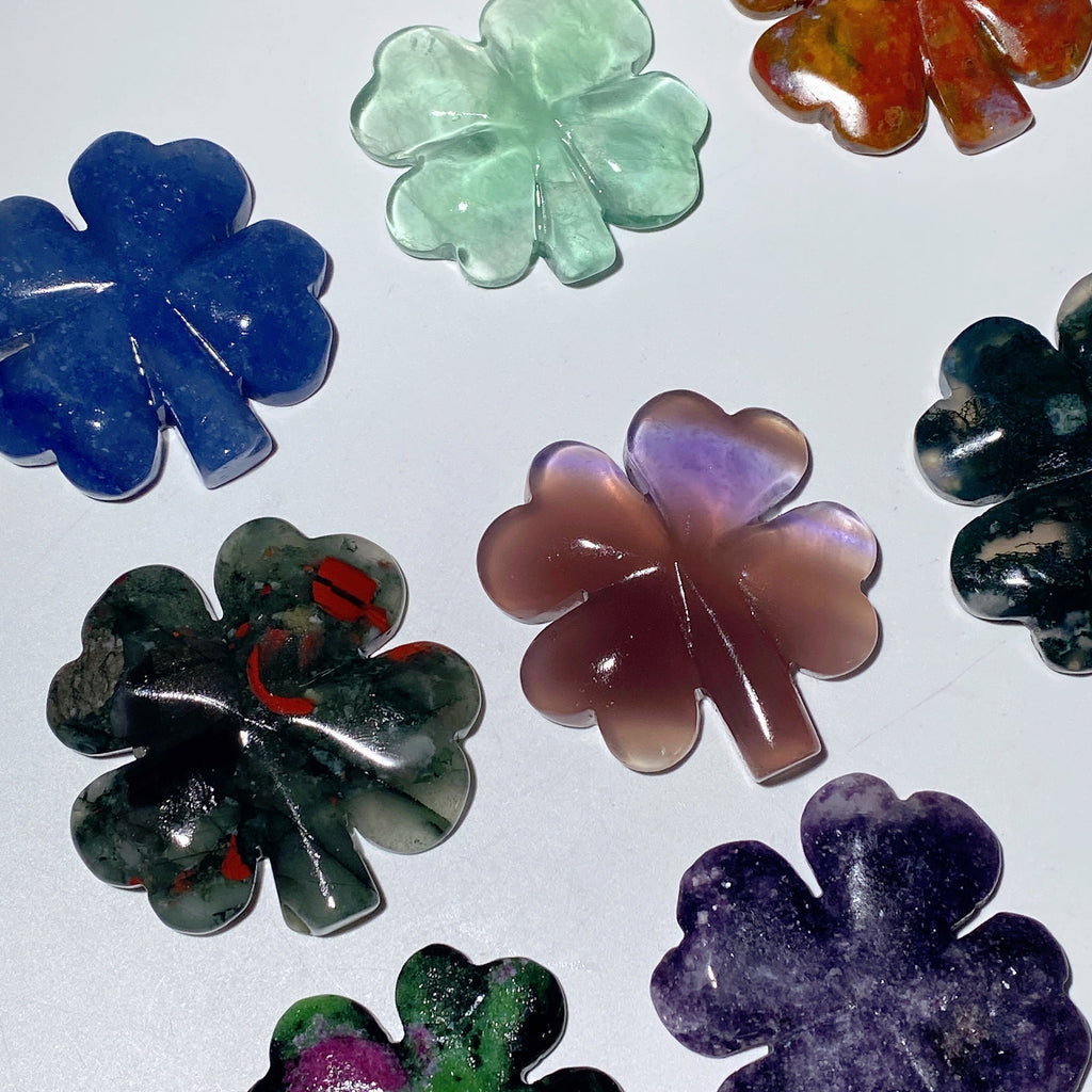 Diese vierblättrigen Kleeblattfiguren aus gemischten Kristallen sollen Glück, heilende Energie und Ausgeglichenheit bringen. Jede Kristallvariante bietet einzigartige energetische Eigenschaften, die Ihre spirituelle Praxis oder Ihre Energie zu Hause verbessern.