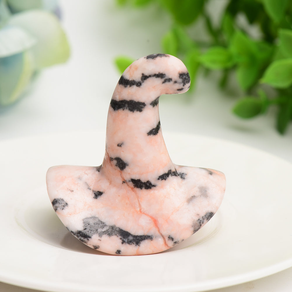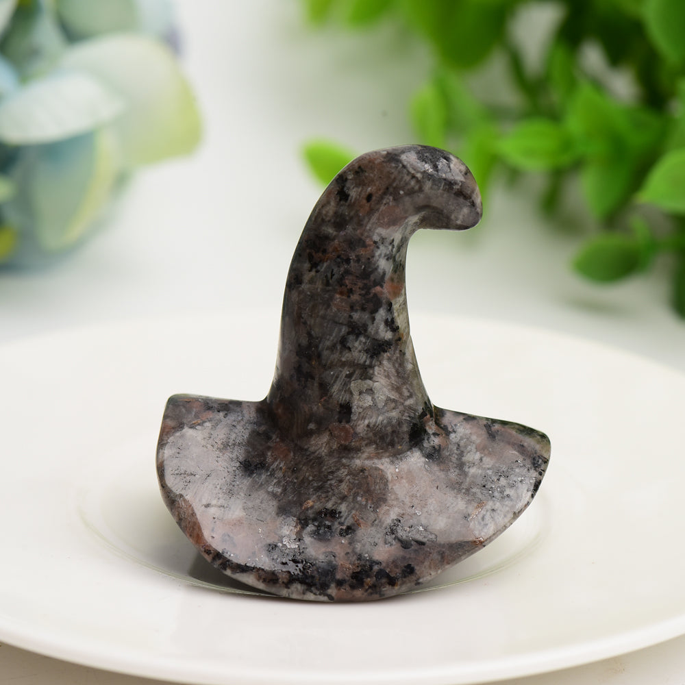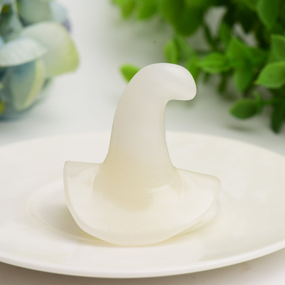 This hand-carved wizard hat measures approximately 2 inches (approx. 5 cm) in size and weighs about 2.1 oz (approx. 60 g). Its compact size makes it ideal for display on desks or altars.