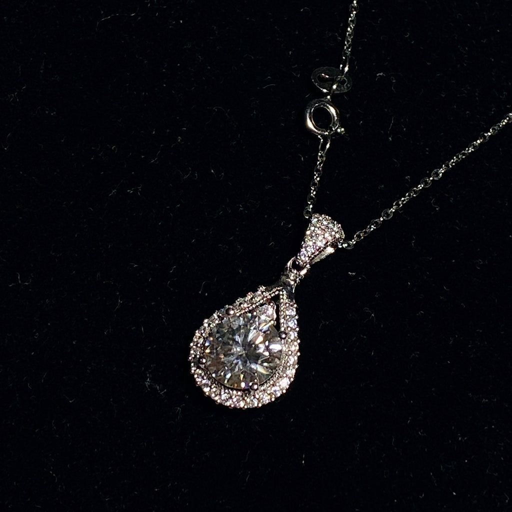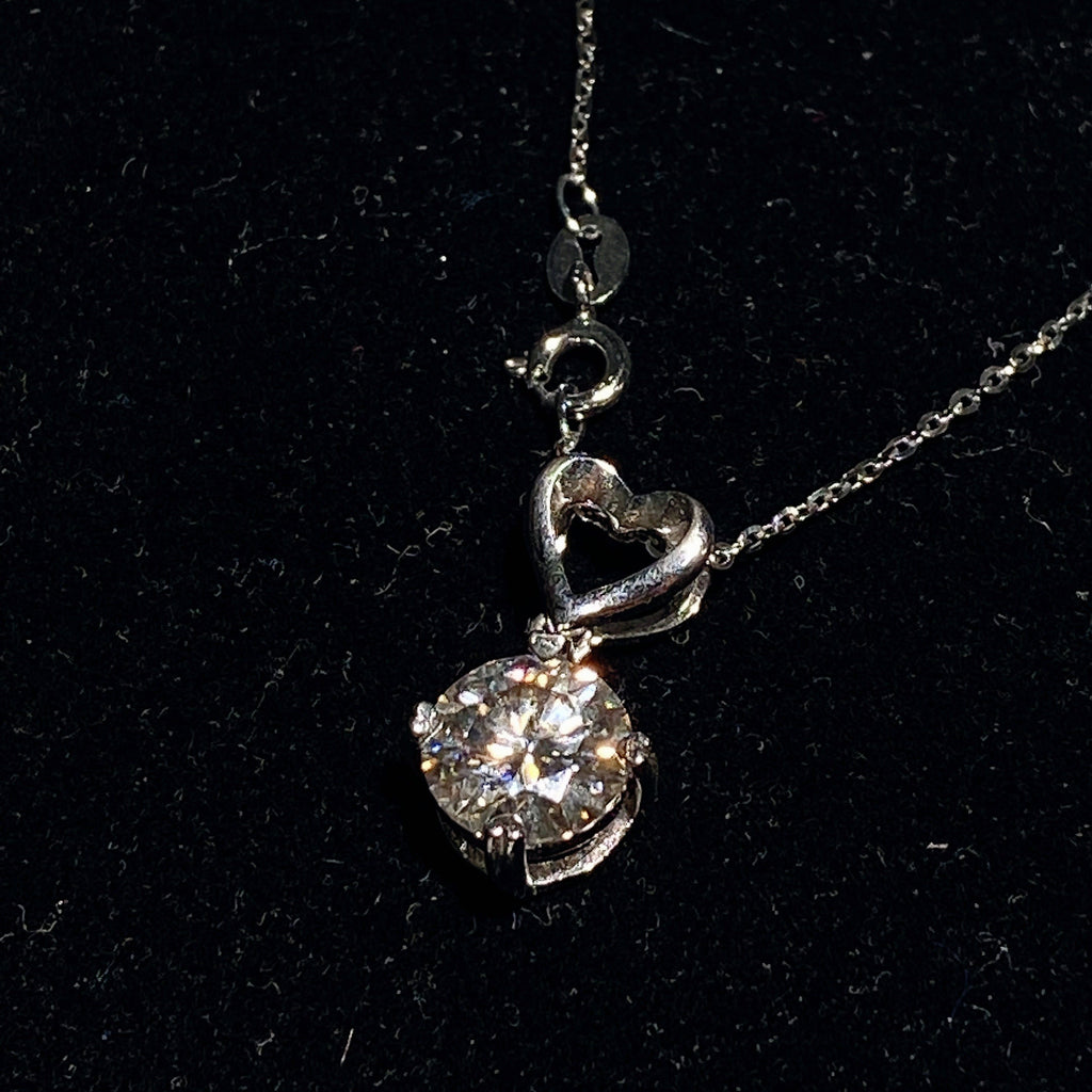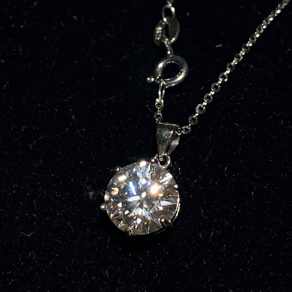 This pendant comes in various sizes of the Moissanite stone ranging from 1.0 carat up to 5.0 carats. The pendant size measures approximately 15-30 mm (0.6-1.2 inches), with a 22 cm (8.7 inches) sterling silver chain included.