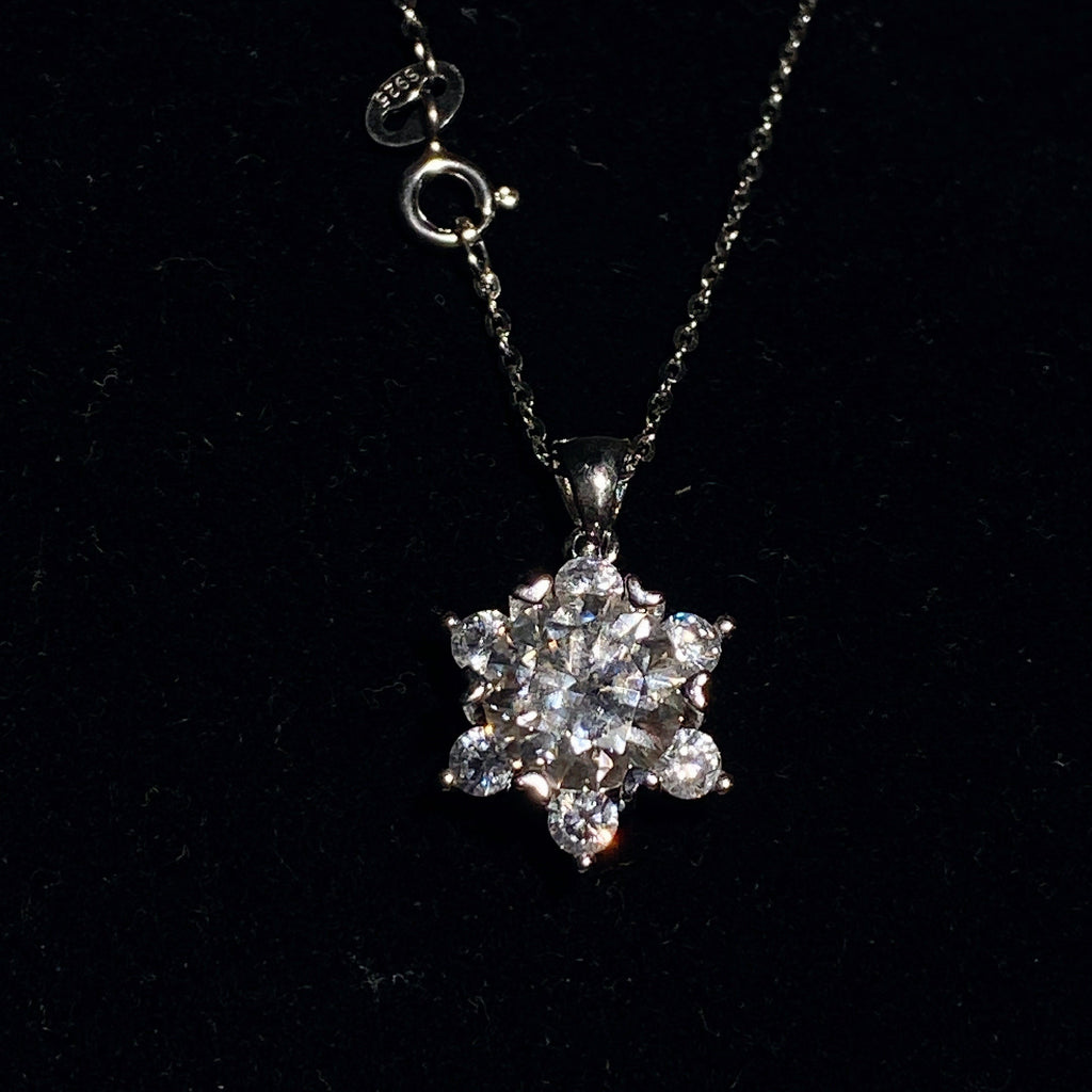 The sterling silver Moissanite pendant is known for its clarity and brilliance, enhancing spiritual healing and protection. Many wear it to boost positive energy and emotional balance during meditation and daily activities.