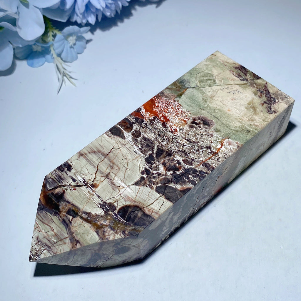 Dieser Kristallturm ist etwa 12,7 bis 20,3 cm hoch. Er ist in Beutelgewichten von 0,5 kg bis 1,0 kg erhältlich und eignet sich für verschiedene Ausstellungs- und Heilungszwecke.