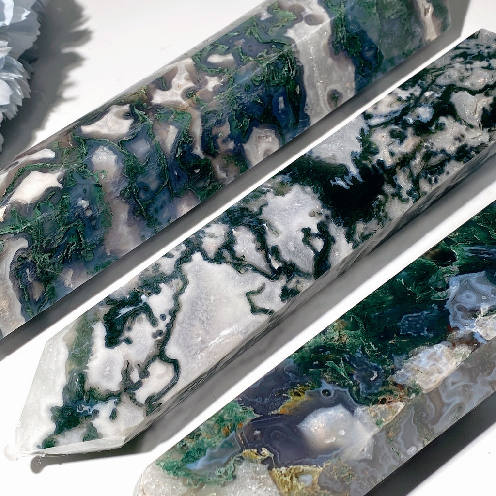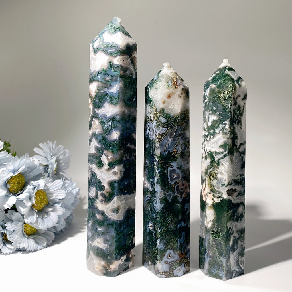 Der Moosachat-Kristallturm ist dafür bekannt, Heilung, Gleichgewicht und emotionales Wachstum zu fördern. Seine beruhigende grüne Energie unterstützt die Harmonie und revitalisiert Ihren spirituellen Raum, was ihn ideal für Meditation und Energiearbeit macht.