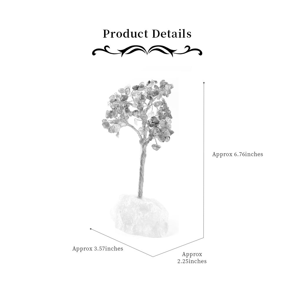 The crystal tree stands approximately 6.7 inches tall (approx. 17 cm) and weighs around 0.3 kilograms (approx. 10.6 ounces), making it an ideal size for display on desks or small altars.