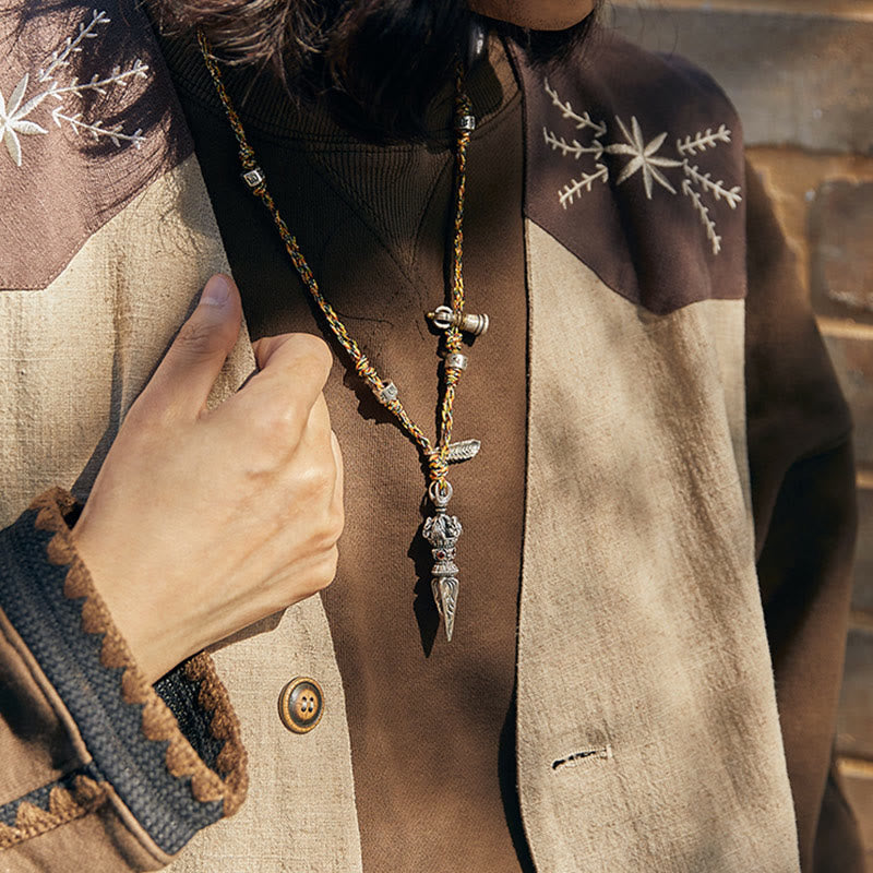 The Om Mani Padme Hum necklace carries the powerful Sanskrit mantra symbolizing love, wisdom, and purity. Paired with the dorje vajra pendant, it embodies enlightenment, spiritual power, protection, and balance, helping wearers connect deeply to universal vibrations and inner strength.
