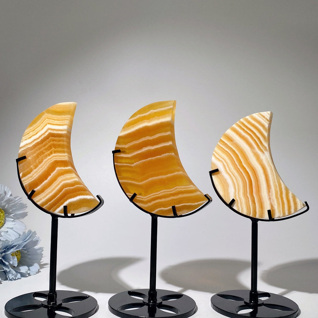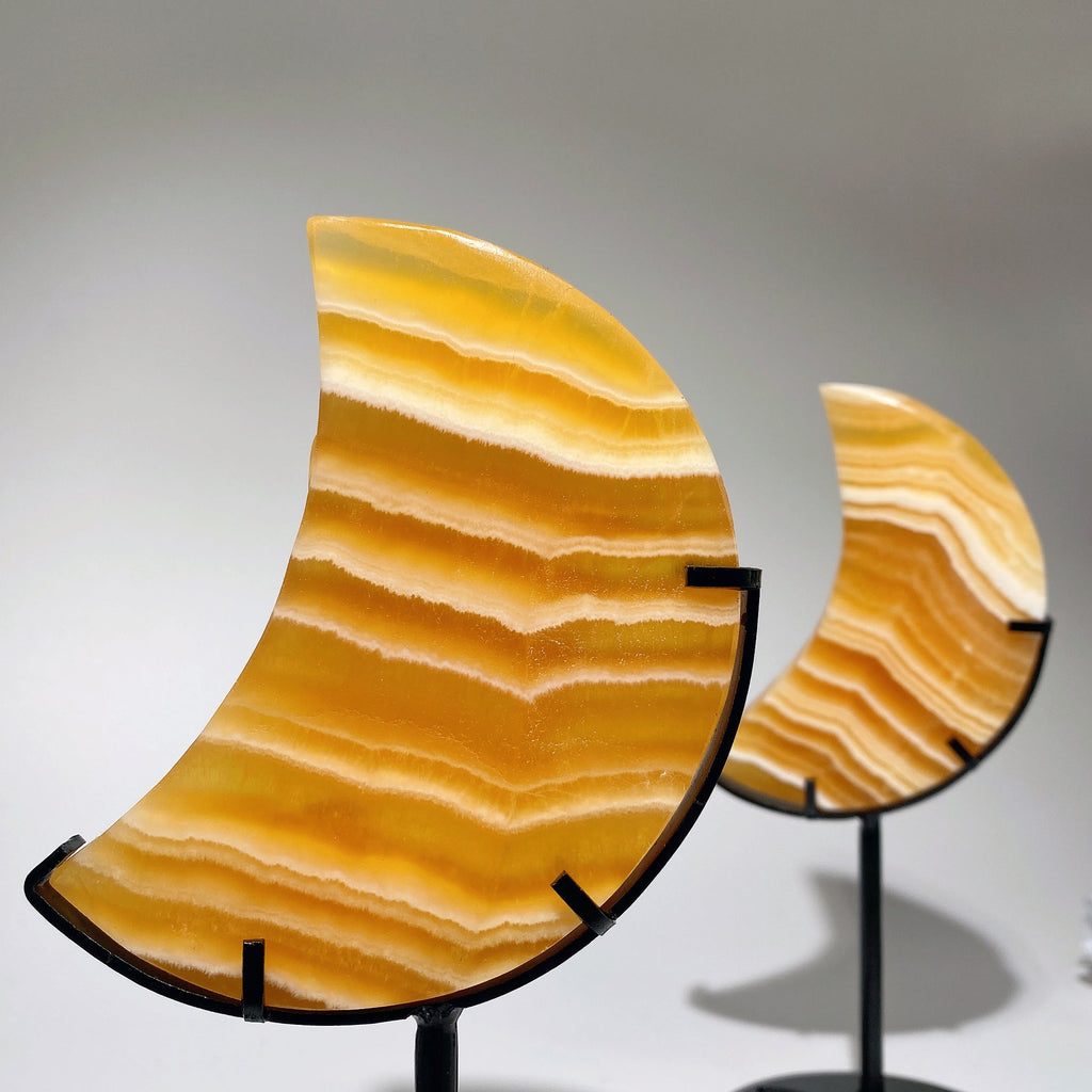 The orange calcite moon crystal is known for promoting energy cleansing and emotional balance. It helps uplift the spirit while encouraging creativity and positivity, making it a wonderful addition to any spiritual home decor.