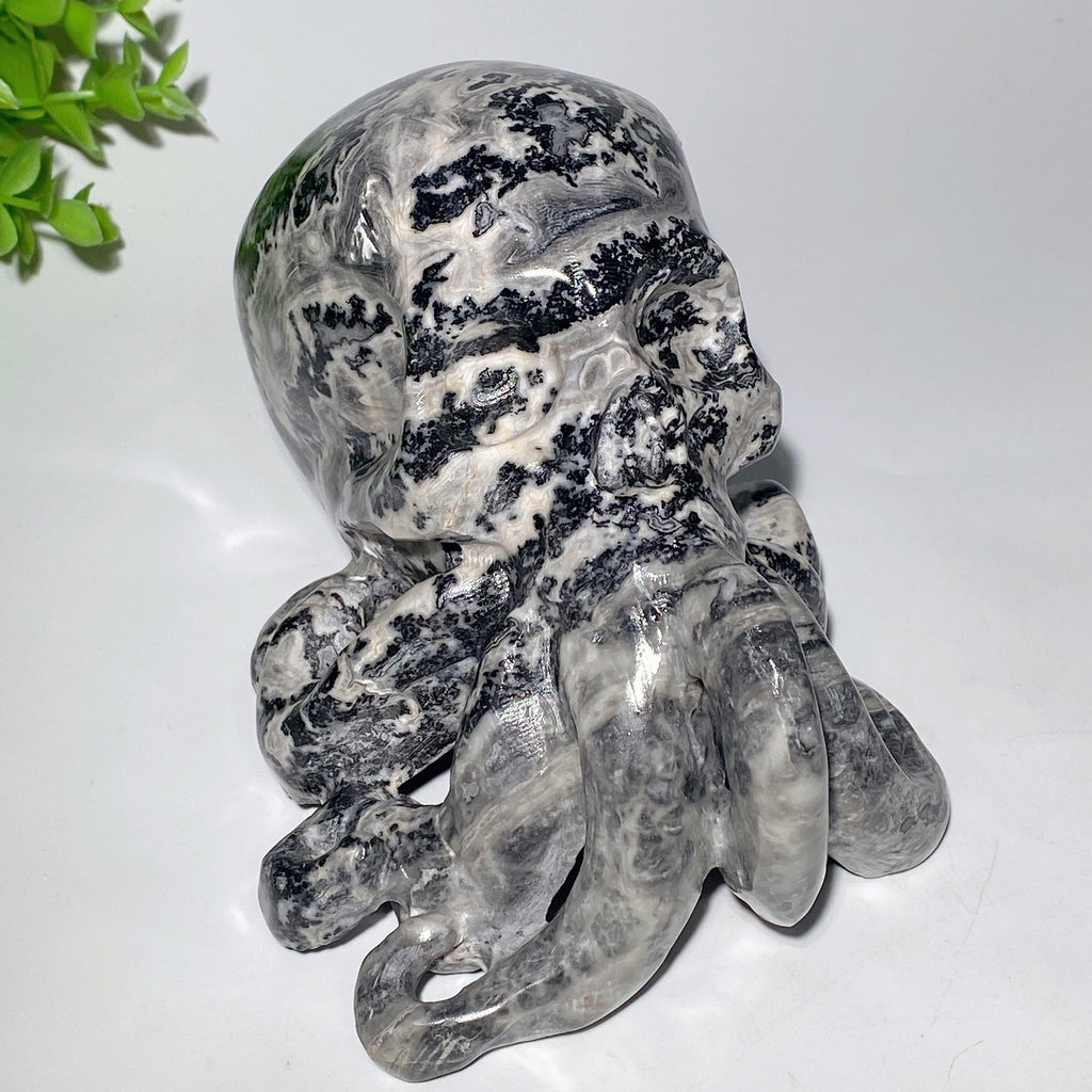 The Picasso Stone is known for its grounding and balancing energies, helping to clear negative thoughts and promote a calm, centered state. This octopus skull carving embodies those qualities, making it a powerful piece for meditation and healing rituals.