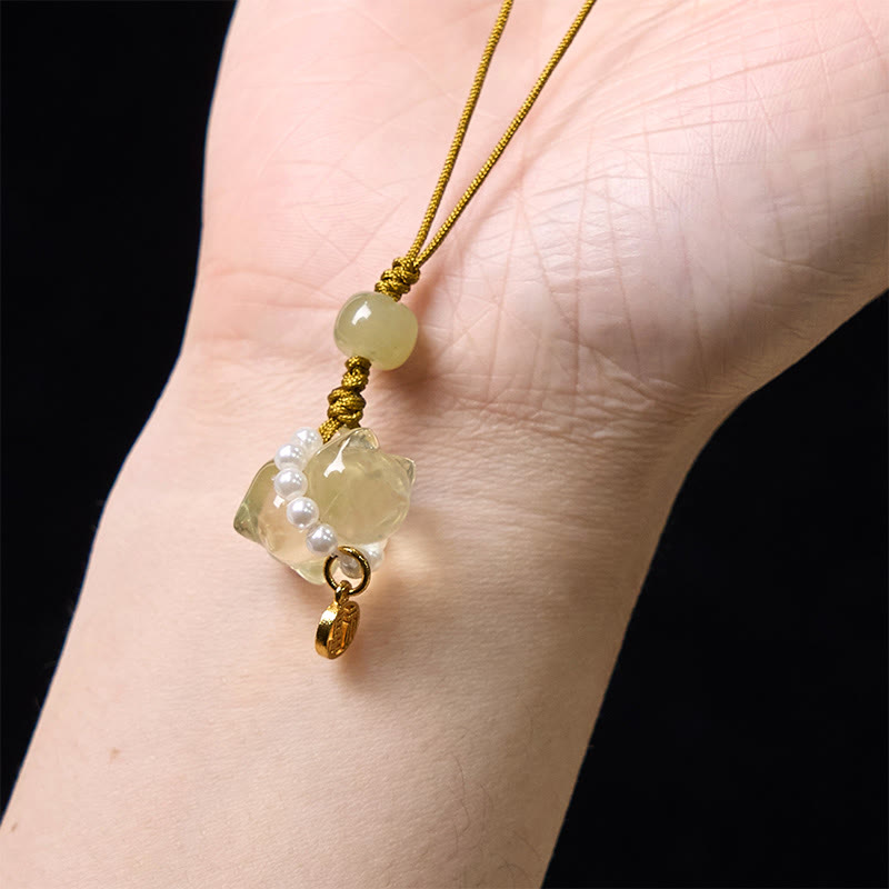 Das charmante Kätzchen-Design verleiht dem Schmuckstück eine verspielte Note und bewahrt gleichzeitig die energetischen Eigenschaften des Schmucks . Diese Kombination aus alter Weisheit und bezauberndem Design schafft ein bedeutungsvolles Accessoire, das Sie mit Traditionen des spirituellen Schutzes und der positiven Transformation verbindet.