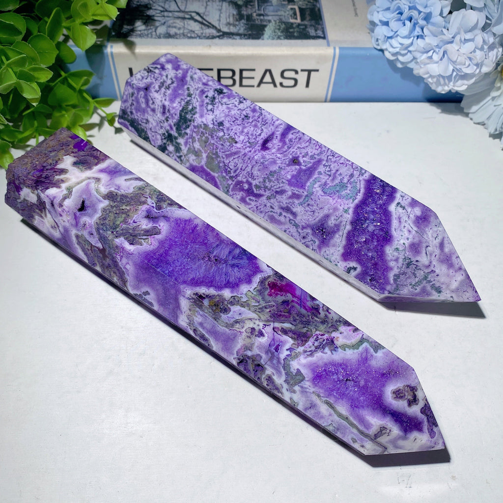 Über ihre metaphysischen Eigenschaften hinaus dienen diese Türme aus violettem Moosachat als atemberaubende Dekorationselemente. Platzieren Sie sie auf Bücherregalen, Schreibtischen oder Beistelltischen, um Blickfang zu schaffen, der die Blicke auf sich zieht und Gespräche anregt. Viele Praktizierende integrieren diese hochschwingenden Türme in ihre Wohnkultur, sowohl aus ästhetischen Gründen als auch wegen ihrer energetischen Vorteile.