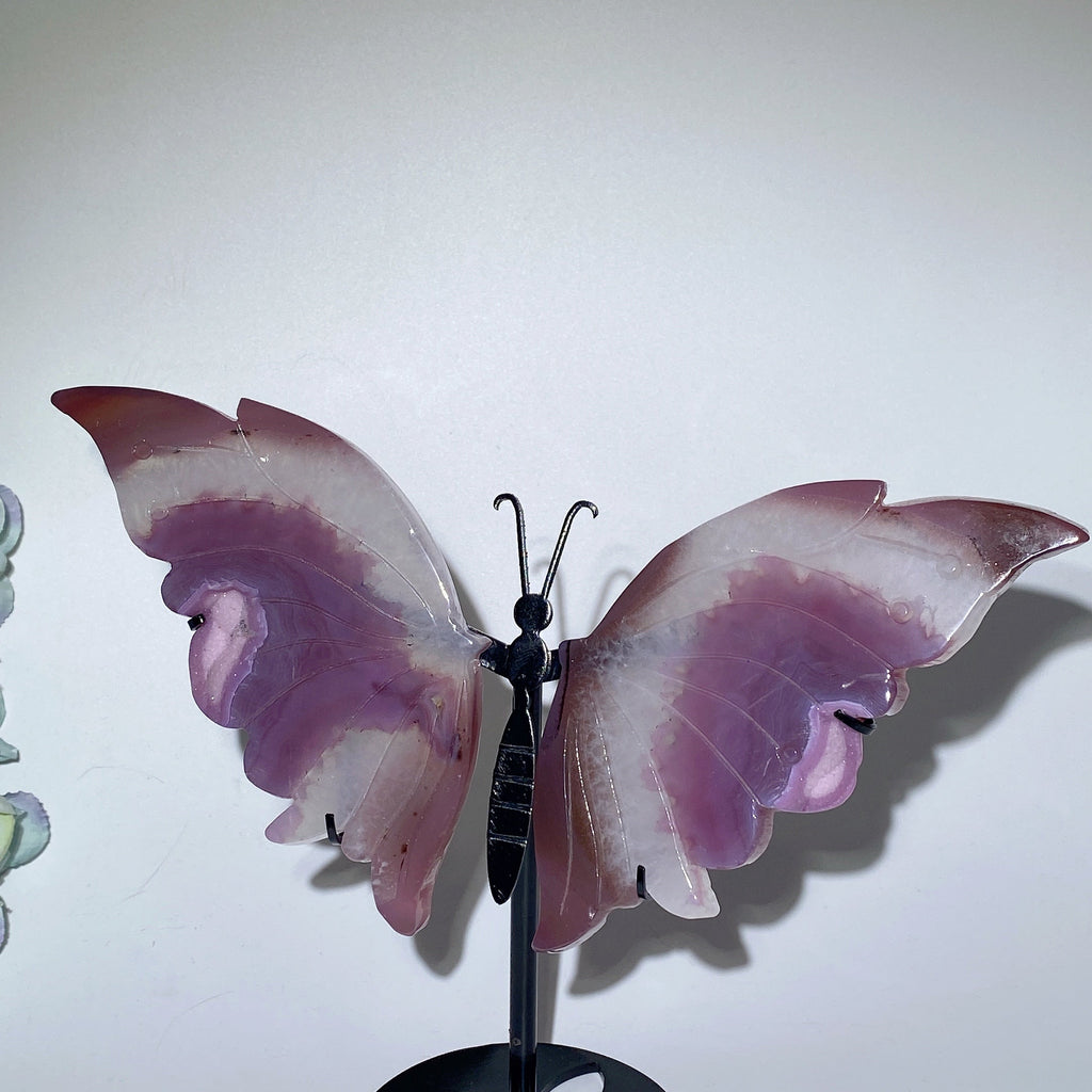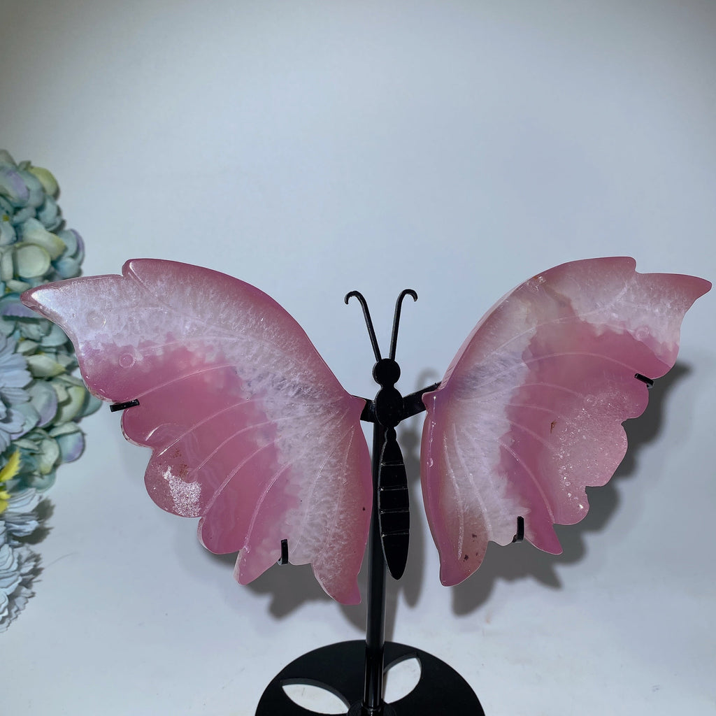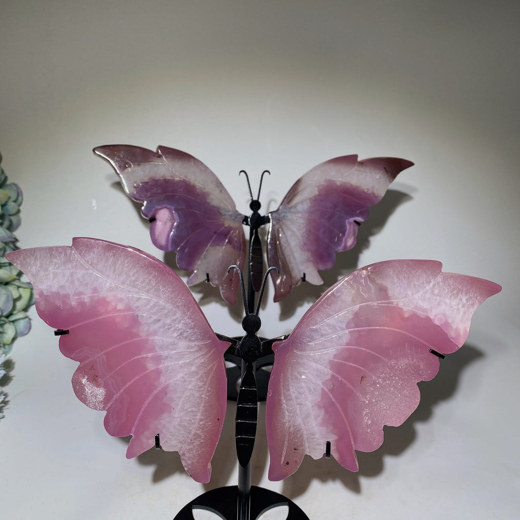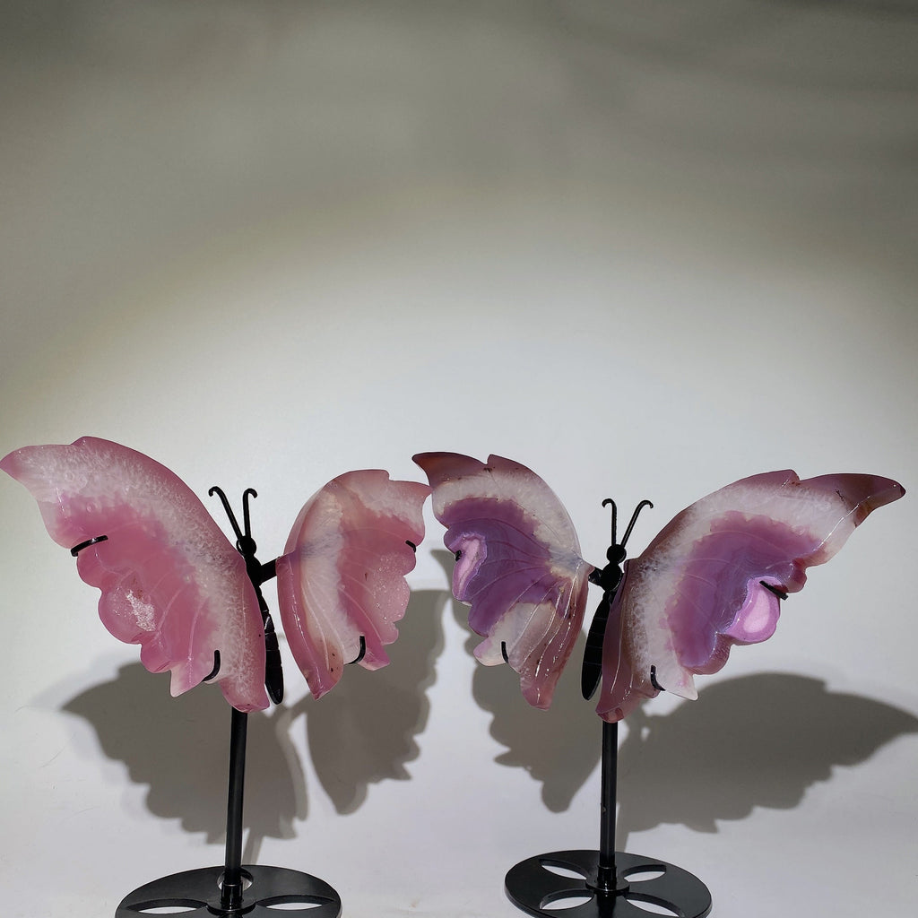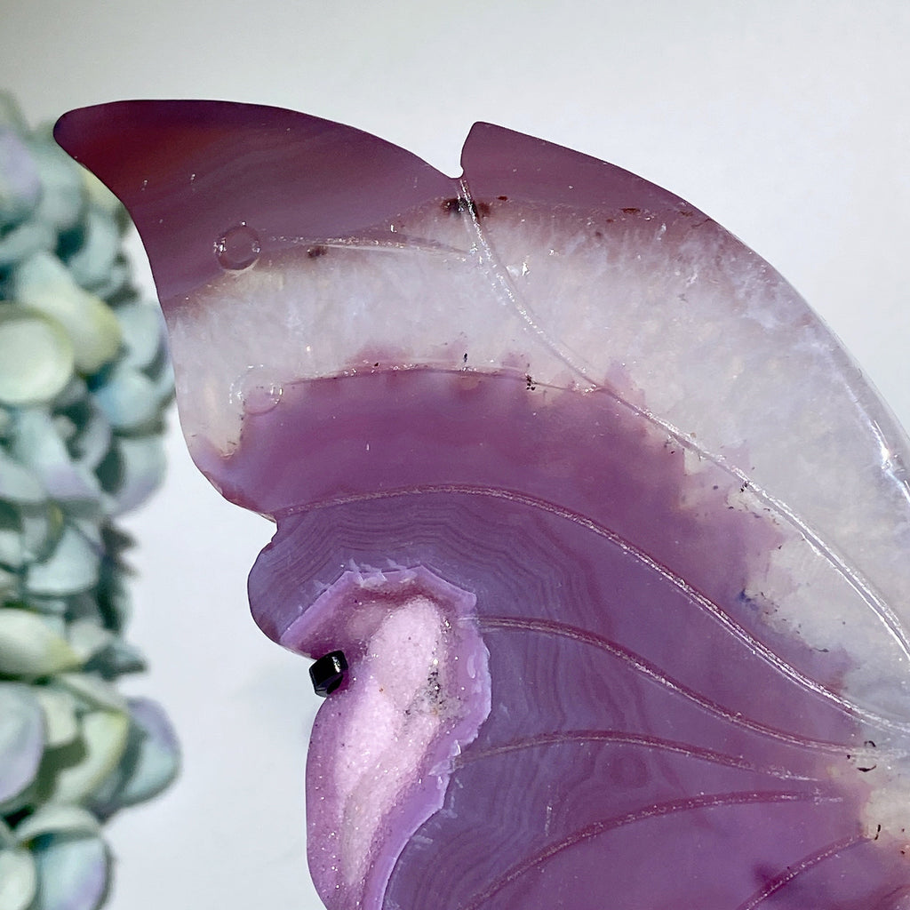 The Purple Rose Druzy Agate Butterfly Wings bring gentle healing energy, enhancing creativity and emotional balance. Their calming presence supports meditation and spiritual growth, making them a beautiful addition to any healing crystal display.