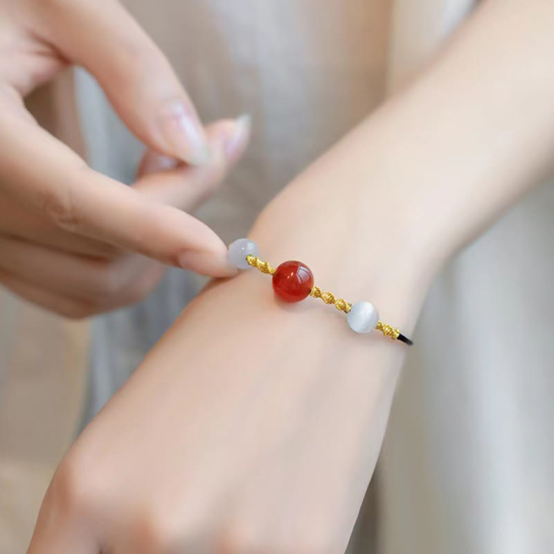 - Material: Natural Red Agate, Cat Eye, Braided String