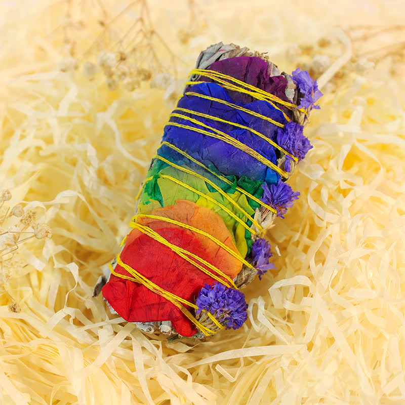 Jedes Räucherstäbchen wird sorgfältig von Hand mit nachhaltig gewonnenen roten Rosenblättern oder wahlweise mit bunten Rosen-Vergissmeinnicht- oder bunten Gänseblümchen-Pflanzen umwickelt. Diese Energiereinigungswerkzeuge nutzen die Kraft der Natur, um negative Energien zu vertreiben und eine gereinigte Umgebung zu schaffen, die sich ideal für Meditation, Yoga oder einfach zum Harmonisieren Ihres Zuhauses eignet.