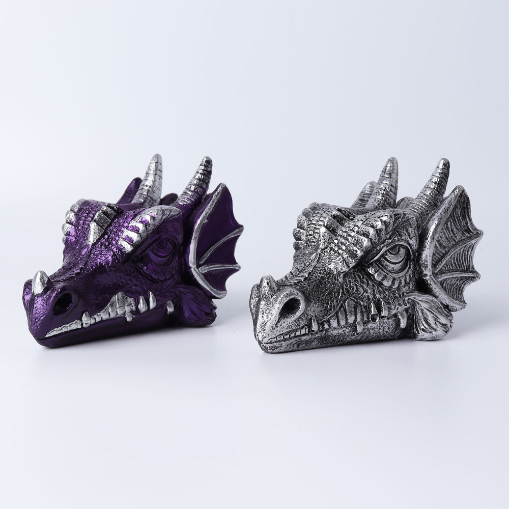 Crafted from premium resin with detailed sculpting, this dragon head stand offers durability and a polished finish. It withstands typical home conditions and retains its color and form with gentle care.