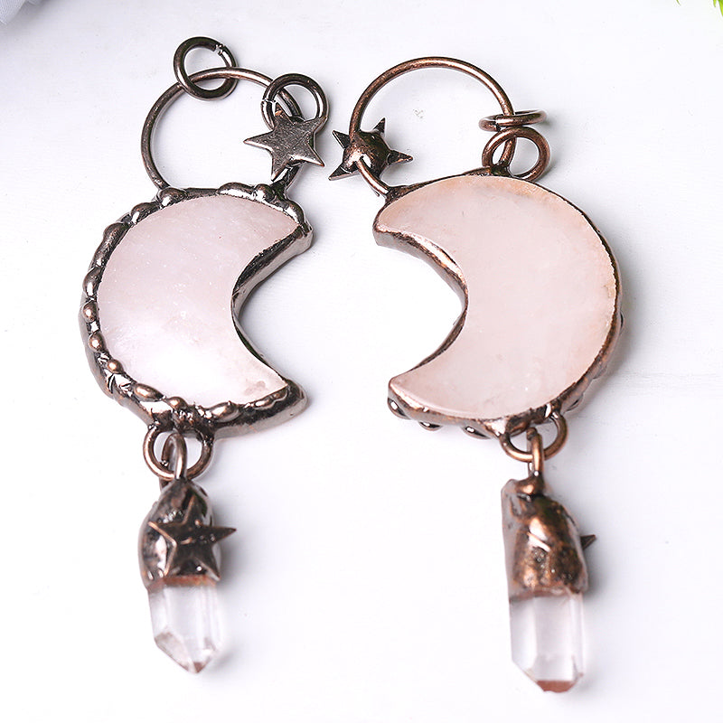 This rose quartz moon pendant is known for its powerful emotional healing properties, promoting love, compassion, and peace. The crescent shape symbolizes new beginnings and spiritual growth, while the clear quartz accent amplifies its energy, making it a beautiful aid in meditation and heart chakra balance.