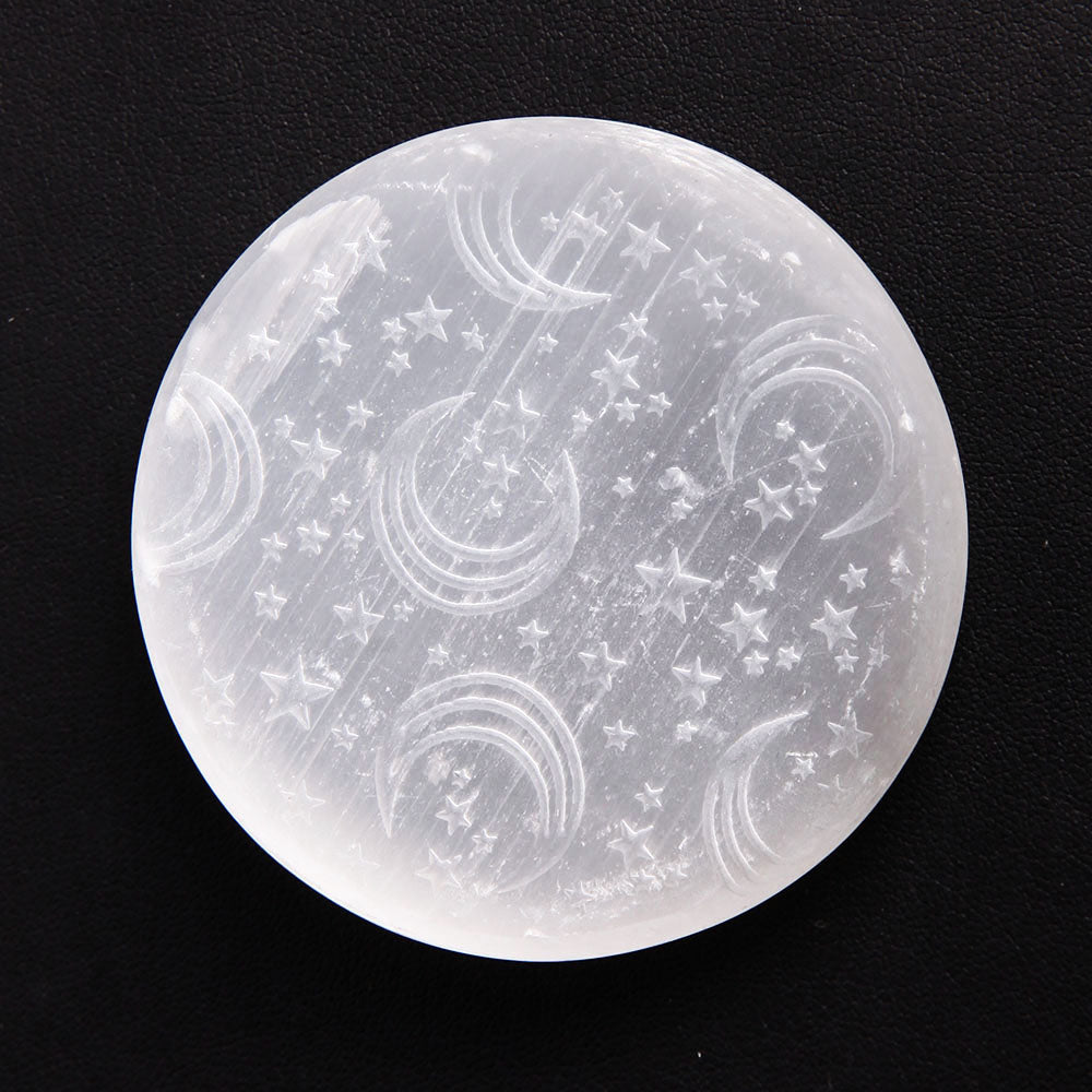 This selenite palm stone is known for removing negative energy and influences, helping to promote a sense of calm and clarity. The engraved moon enhances its spiritual connection, making it ideal for meditation and energy clearing.
