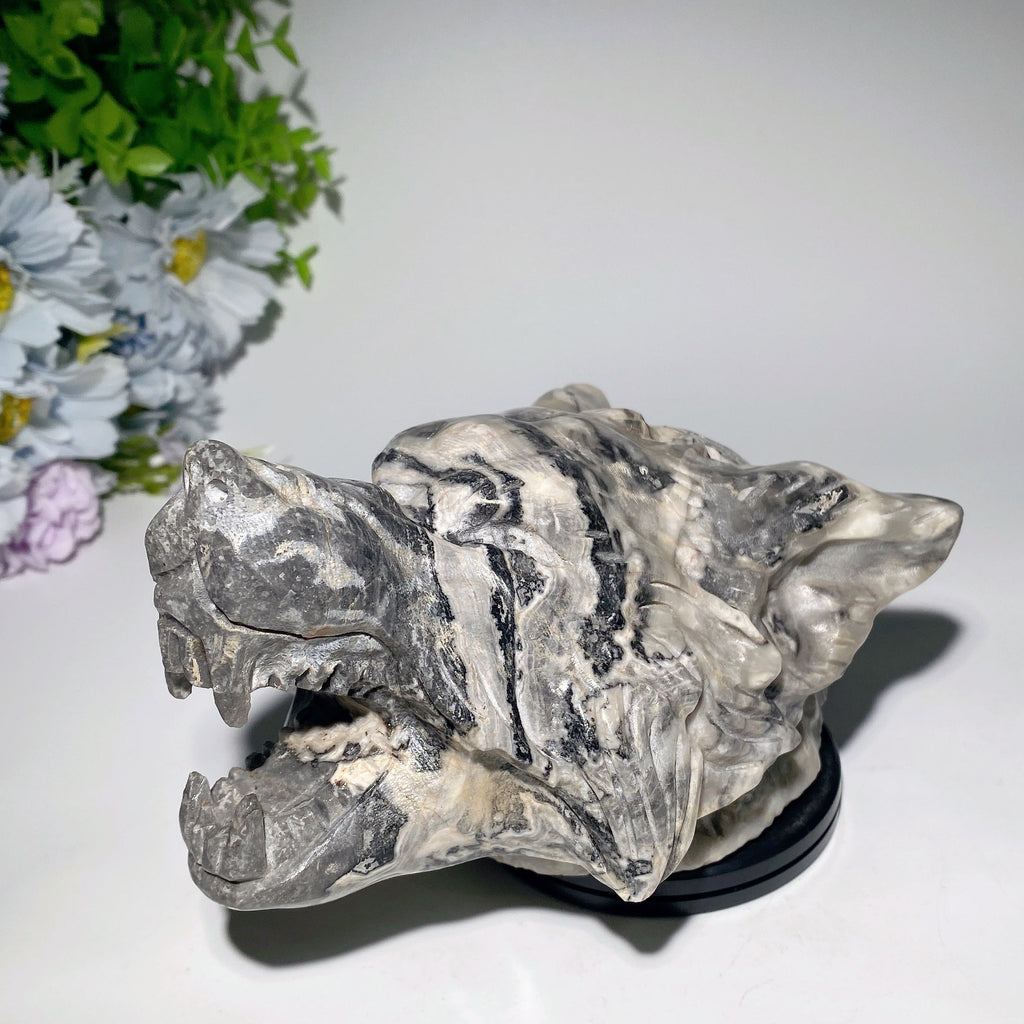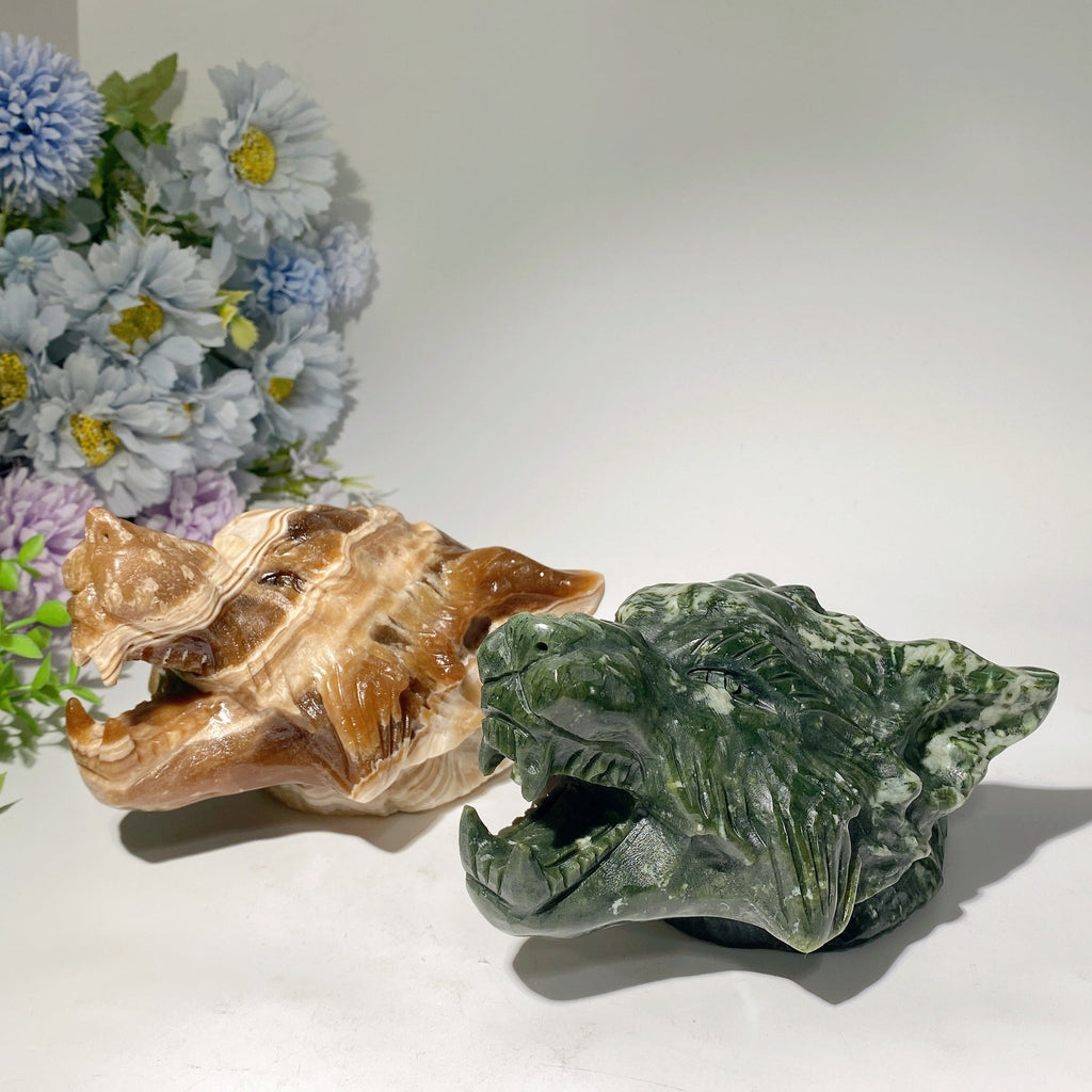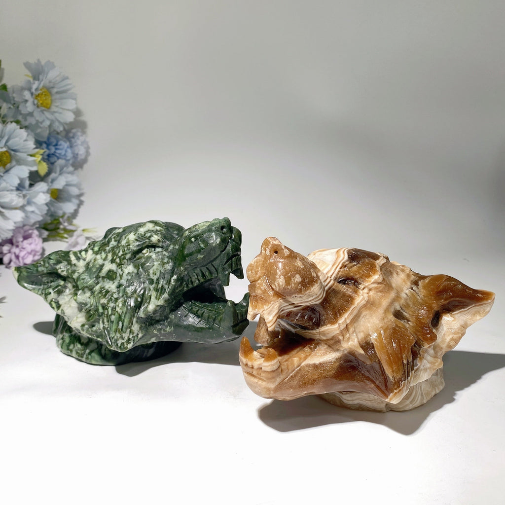 The serpentine wolf crystal carving is believed to enhance intuition, promote protection, and connect you deeply with your wolf spirit animal. It's ideal for meditation and spiritual healing practices.
