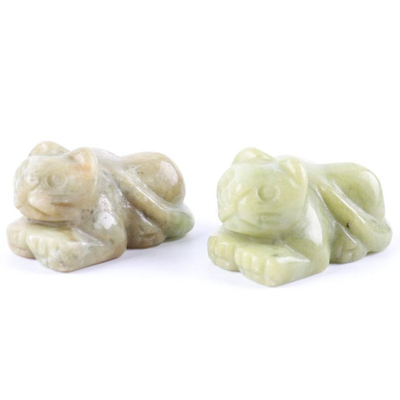 Ja, jede Katze ist aus echtem Serpentinstein geschnitzt. Die Steine weisen natürliche Farbvariationen von Hellgrün bis Blassgelb auf, wodurch jedes Stück einzigartig und authentisch ist.
