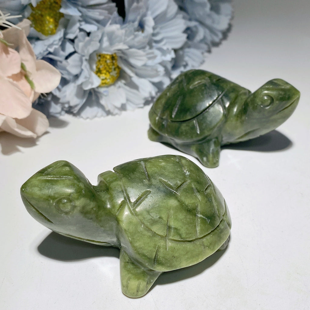 To preserve both its beauty and energy, gently clean your serpentine turtle with a soft cloth. Avoid water exposure and remove it during sleep or washing.