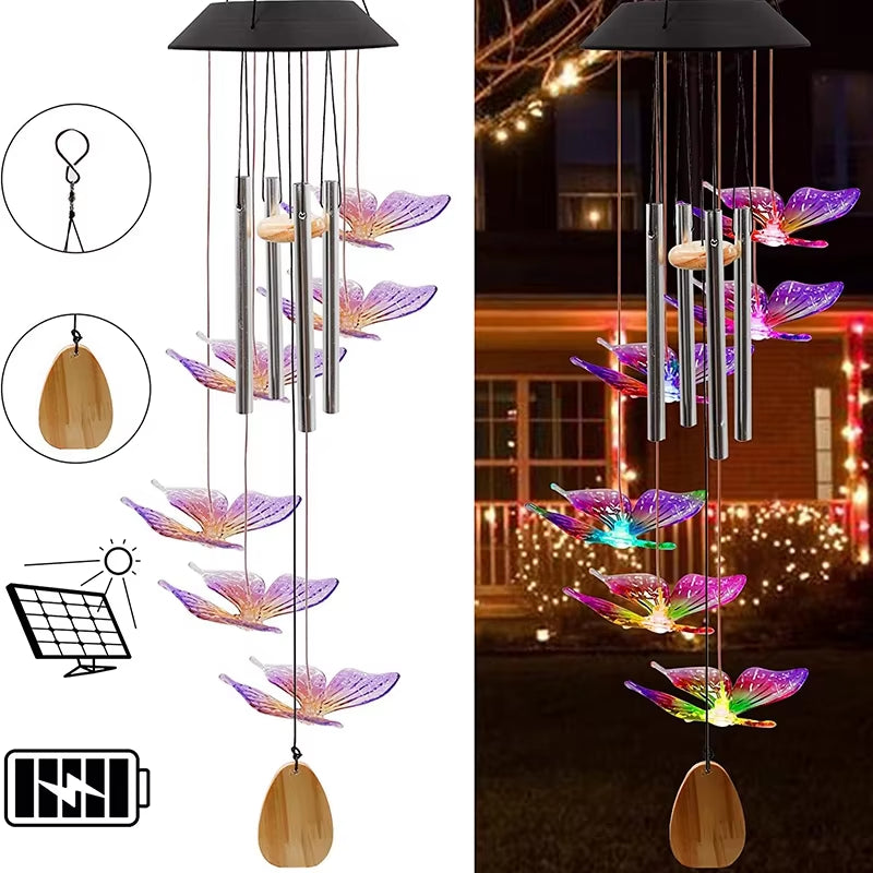 Entdecken Sie die Magie von Solar-Windspielen mit unserem wasserdichten Solar-Windspiel mit Farbwechsellicht . Diese einzigartigen Windspiele verschönern Ihren Garten nicht nur mit ihren wunderschönen Melodien, sondern erhellen Ihren Raum auch mit leuchtenden Farben. Dank der solarbetriebenen Technologie können Sie die beruhigenden Klänge und faszinierenden Lichter genießen, ohne dass Sie eine externe Stromversorgung benötigen. Schalten Sie einfach den Schalter ein und lassen Sie das Windspiel tagsüber die Sonne aufsaugen, um Ihre Abende zu erhellen. Diese Windspiele sind perfekt für Ihre Terrasse, Ihren Garten oder Ihren Hof und verleihen jedem Außenbereich einen Hauch von Eleganz und Ruhe.