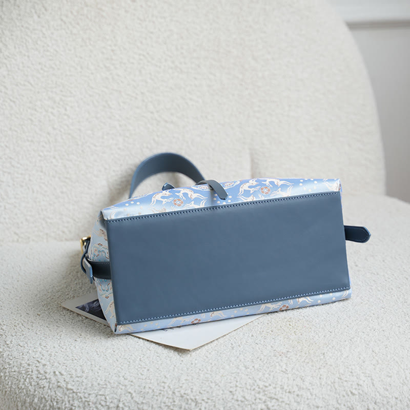 - Material: Hochwertiger 38 Momme Song Brokat mit Akzenten aus vollnarbigem Leder