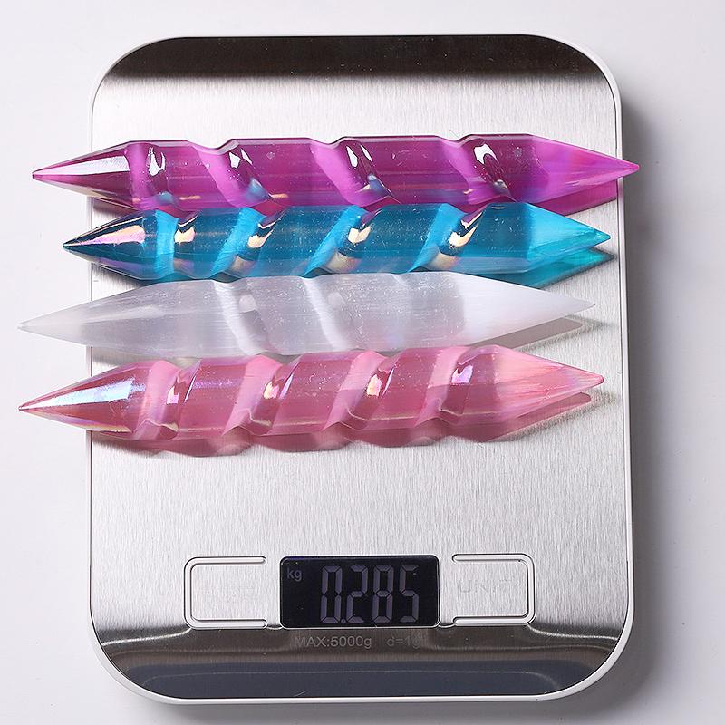 Der 15 cm lange Spiralstab aus Selenitkristall kann in verschiedene Achtsamkeitsübungen integriert werden, darunter Yoga oder Momente der persönlichen Besinnung. Selenit wird in einigen Traditionen seit langem mit der Förderung von Ausgeglichenheit und geistiger Klarheit in Verbindung gebracht. Das Halten oder die Verwendung des Stabes in Ihrer Praxis kann zu einem ruhigen Zustand und einer klareren Perspektive beitragen. Nutzen Sie die traditionell mit Selenit verbundenen Eigenschaften, die ein stärkeres Gefühl von Frieden und Zentriertheit fördern können.