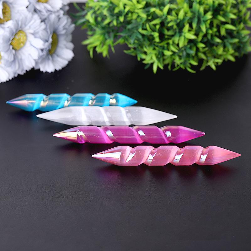 Entdecken Sie die einzigartigen Eigenschaften unserer 6-Zoll-Spiralstäbe aus Selenit mit Doppelenden , die sorgfältig gefertigt wurden, um Ihre spirituellen und meditativen Praktiken zu ergänzen. Selenit gilt traditionell als beruhigender Stein und wird häufig zur Unterstützung von Entspannung und Konzentration in verschiedenen Achtsamkeitsübungen verwendet. Dieser Chakra-Kristallstab wird in einigen Traditionen mit der Förderung von Einsicht und Klarheit in Verbindung gebracht. Sein Doppelende ermöglicht den Fluss von Schwingungen in beide Richtungen und fördert so ein Gefühl von Ausgeglichenheit und Harmonie während der Anwendung.
