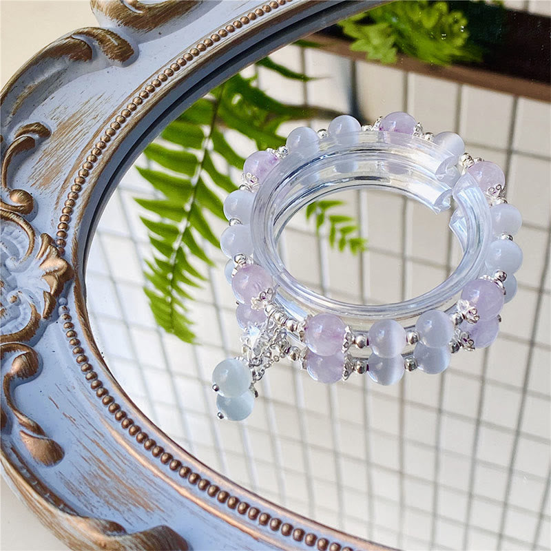 Katzenauge hilft, egoistische Gedanken zu vertreiben und sich der Fülle göttlicher Energie zu öffnen, was es zu einem perfekten Partner für die spirituellen Eigenschaften des Amethysts macht. Zusammen bilden sie ein positives Energiearmband , das sowohl emotionale Stabilität als auch spirituelle Entwicklung unterstützt.