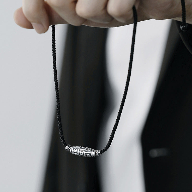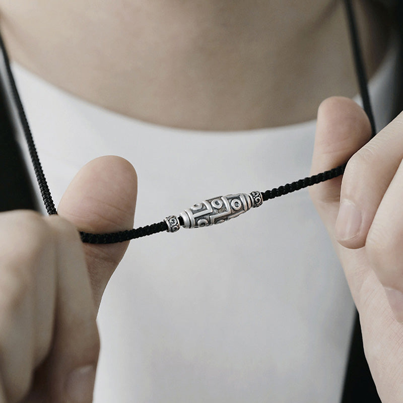Die Neun-Augen-Dzi-Perle wird für ihre kraftvolle Symbolik von Schutz, Weisheit und Wohlstand verehrt. Das Tragen dieser Sterlingsilberkette kann Ihr spirituelles Gleichgewicht stärken, negative Energie abwehren und Segen in Ihr Leben bringen.
