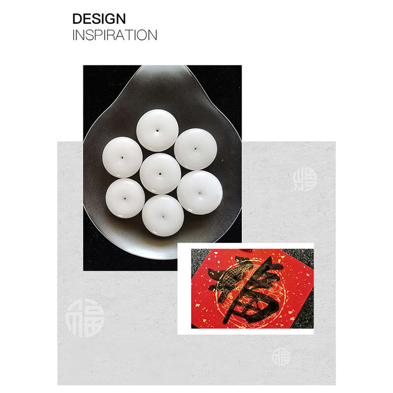 Elegant in das Design integriert ist das chinesische Schriftzeichen „Fu“ (福), ein kraftvolles Symbol für Glück, Segen, Wohlstand und Erfolg. Dieses uralte Symbol wird seit Generationen als Symbol der Positivität und des Glücks geschätzt.