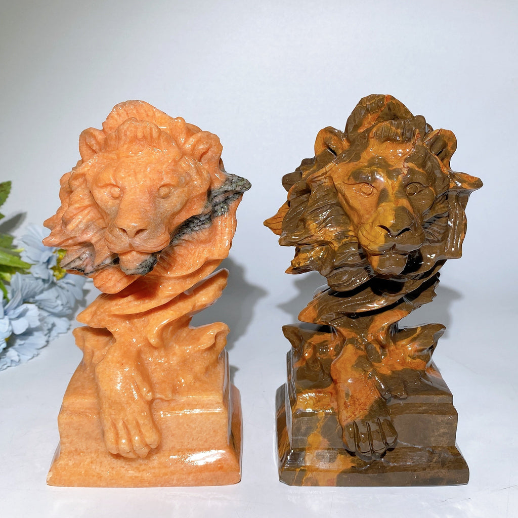 Die Löwenfigur aus Sonnenstein fördert mit ihrer warmen Energie Vitalität und Freude, während der Jadelöwe Schutz und Gelassenheit symbolisiert, wodurch beide perfekt geeignet sind, die spirituelle Energie Ihres Raums zu verstärken.