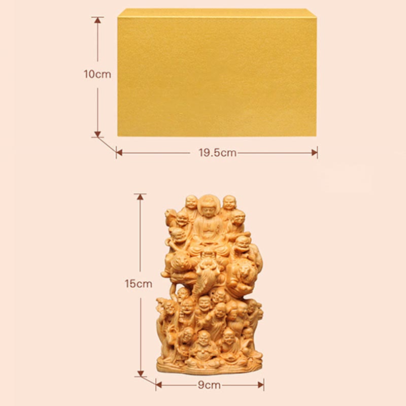 Die aus Thuja Sutchuenensis-Holz gefertigte Buddha-Statue der Achtzehn Arhats dient als Symbol für spirituelle Reinigung und Ruhe . Sie steht für Hingabe und Schutz vor negativen Energien und trägt dazu bei, eine heitere und optimistische Atmosphäre in Ihrem heiligen Raum zu schaffen.