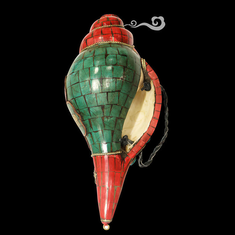 Der tibetische Shankha ist ein kraftvolles Symbol für Wohlstand , positive Energie und Glück . Mit dem eingravierten Mantra „Om Mani Padme Hum“ fördert er Mitgefühl und Gelassenheit und reinigt den Raum mit friedlichen Schwingungen, wodurch Achtsamkeit und spirituelles Wachstum gefördert werden.
