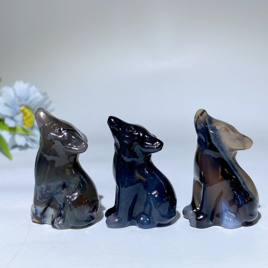 The volcanic agate wolf carving is believed to offer grounding and protective energies. It helps to balance your emotional health while connecting to the wolf spirit animal's strength and intuition.