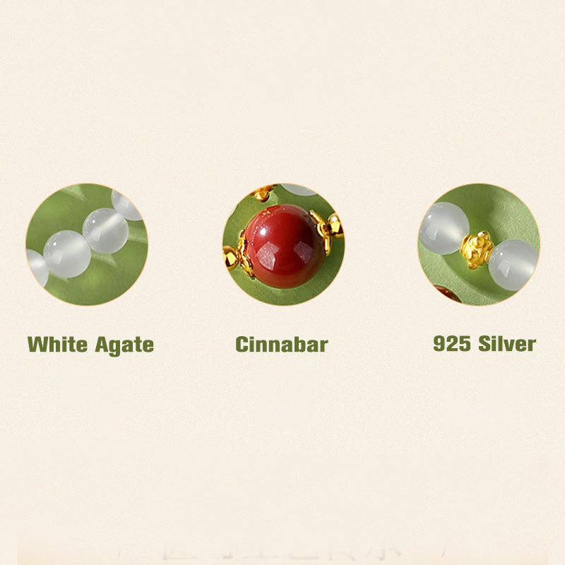 - Materialien: Natürlicher weißer Achat, Zinnober, 925er Sterlingsilber