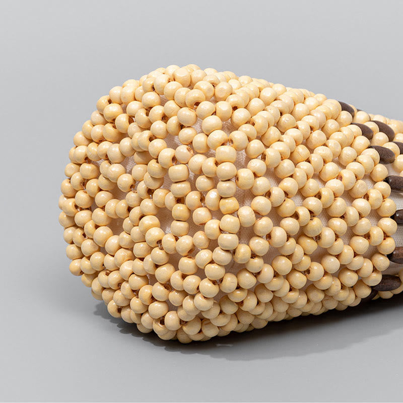 Diese wunderschöne Beuteltasche ist aus natürlichen Holzperlen und strapazierfähiger Polyester-Baumwolle gefertigt. Die Materialien werden sorgfältig ausgewählt, um ein langlebiges und umweltfreundliches Accessoire zu schaffen, das positive Energie transportiert.