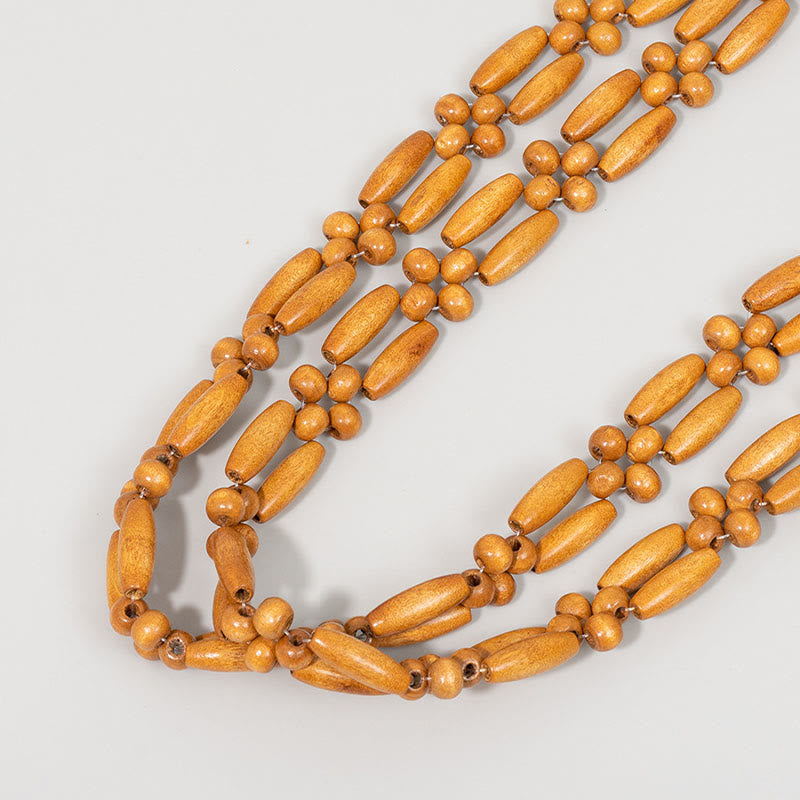 - Materialien: Natürliche Holzperlen, Polyester-Baumwoll-Mischgewebe
